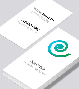 We highly recommend 16pt paper. It’s just the right balance between too thin and too thick. Thin feels flimsy and cheap. Too thick and you’ll have a hard time managing the large stack of business cards you bring along to your next event. Splurge a bit by going with silk coating. We start with our premium paper and coat it with a silk laminate. If you desire you may add a second coat of spot UV (gloss) to give a rich polished look. Plastic could be another alternative. Perfect for the dive instructor, programmer, florist or anybody trying to look different.